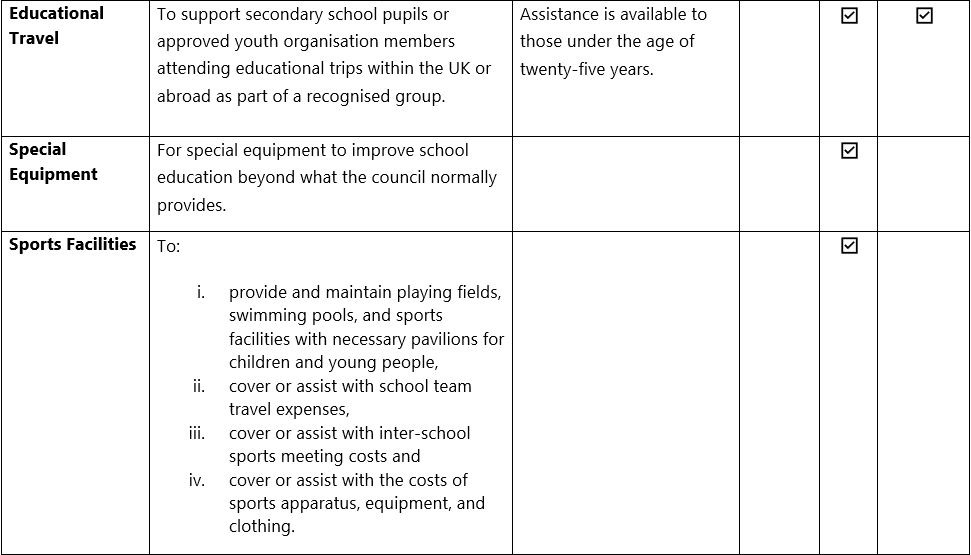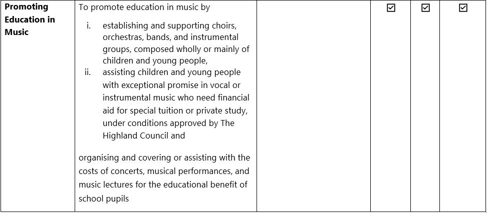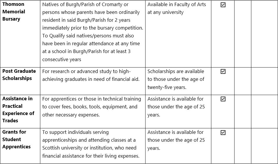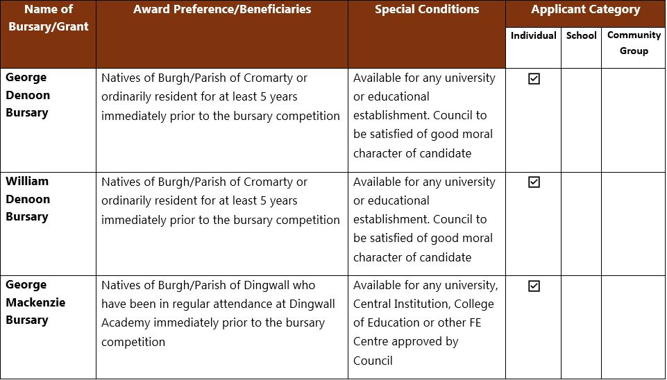 The Ross and Cromarty Educational Trust Scheme covers the areas of the Black Isle, Easter Ross, Dingwall (and Seaforth), Wester Ross, Strathpeffer and Lochalsh.