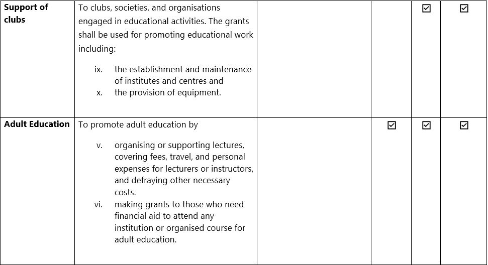 There are a number of endowments from generous benefactors over the years to support individual young people, schools and community groups.