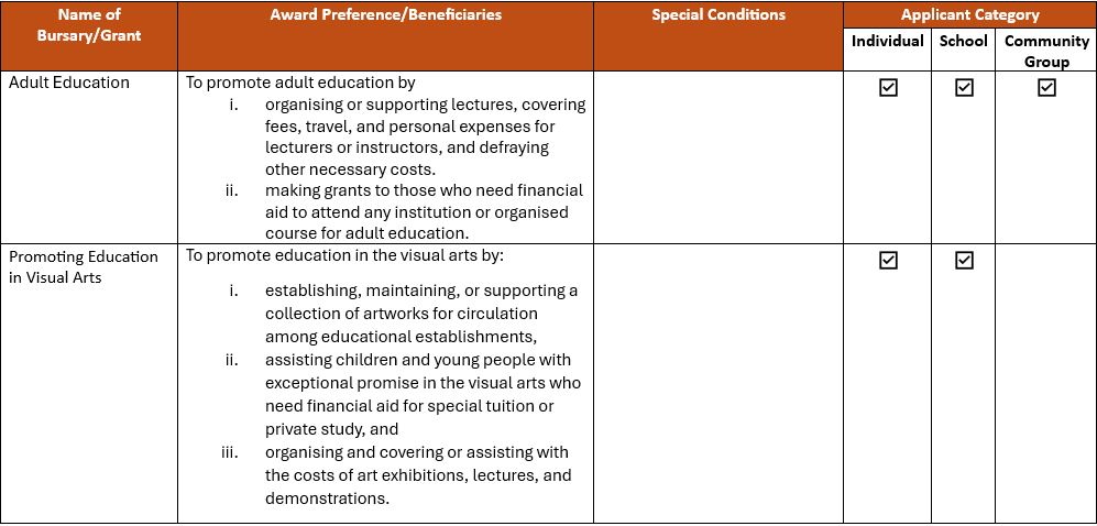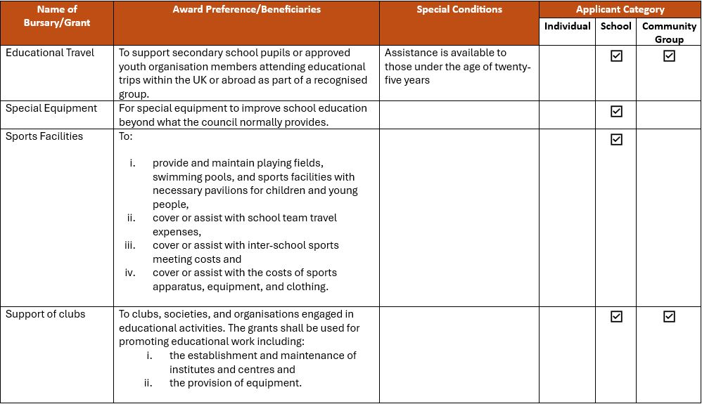 There are a number of endowments from generous benefactors over the years to support individual young people, schools and community groups.